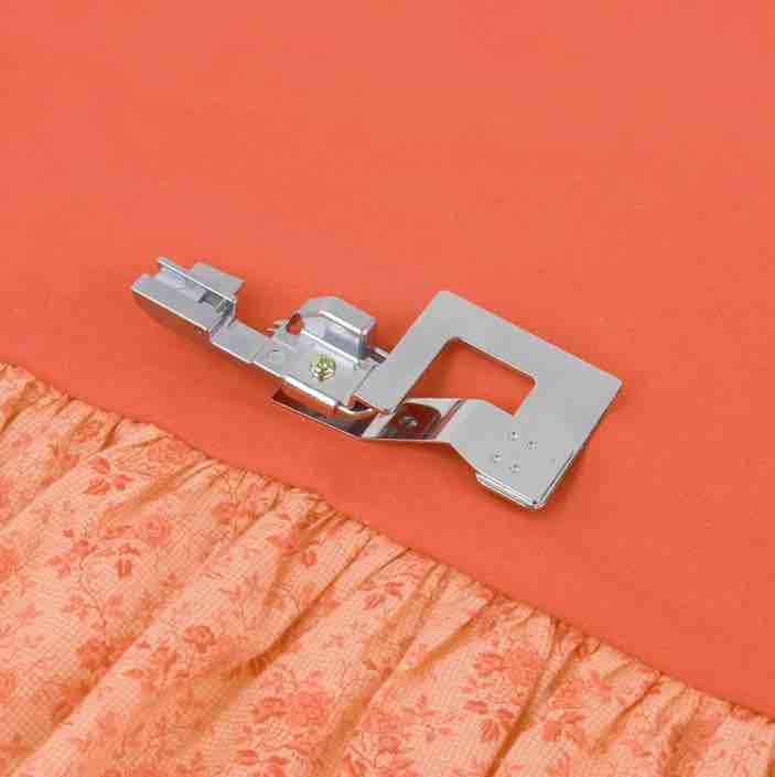 Easily make and attach ruffles as well as finish your edge in one simple step. Add perfectly spaced ruffles to garments, pillows, and other home décor items. This ruffling foot works on all fabric types.
