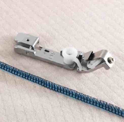 Genuine Brother® Accessory. Attach and sew elastic or tape in one easy step with your overlock machine. Adjustable stitch width up to 12mm. Channel on foot secures elastic or twill tape to fabric eliminating the need for pins as you created a serged edge. Gathers knits as elastic is attached.