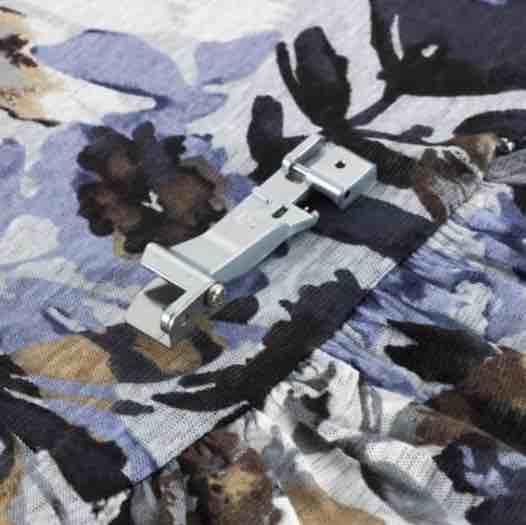 Froncez et finissez les bordures en une seule opération. Ourlez les bordures de tissus avec ce pied encliquetable. Le canal sur le pied fixe solidement le tissu, éliminant ainsi le besoin d'utiliser des épingles pendant que créez un ourlet ou que vous froncez des couches de tissus simples ou doubles. Permet de coudre des couches de tissus et de finir les bordures en une seule opération.