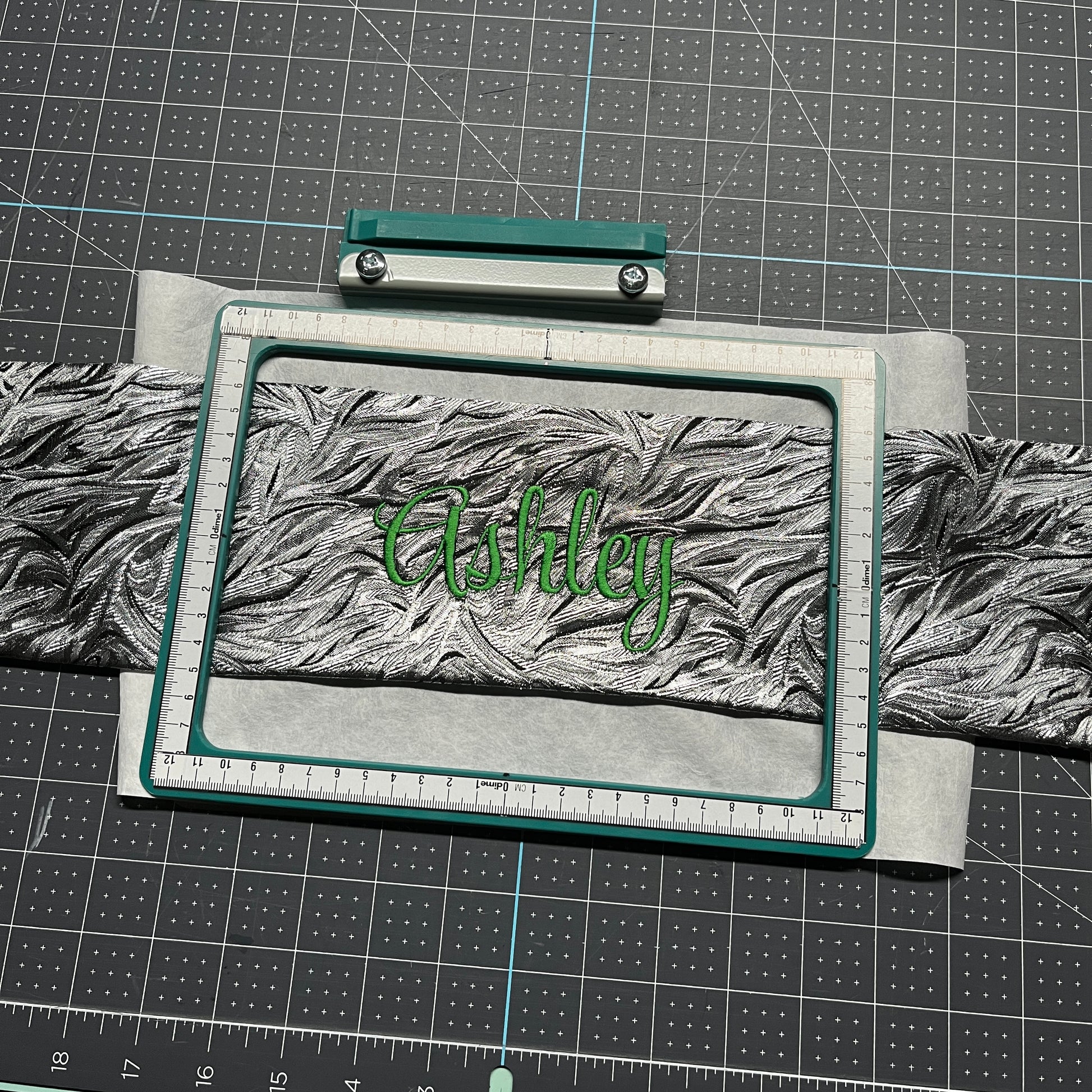 Names are embroidered with your choice of red, green or blue thread. Lighter colours do not work well with this design.