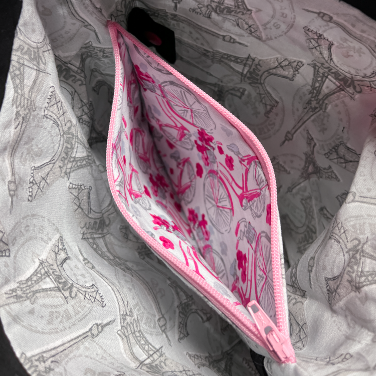 Cette série de sacs est confectionnée en coton pour patchwork et entoilée avec un entoilage tissé pour conserver sa forme. La poche intérieure zippée et divisée est entièrement cousue afin que rien d’un côté ne puisse passer de l’autre. Elle peut contenir vos aiguilles doubles pointes, aiguilles supplémentaires, mètre ruban, ciseaux, petits ensembles d’aiguilles à tricoter et bien plus encore.