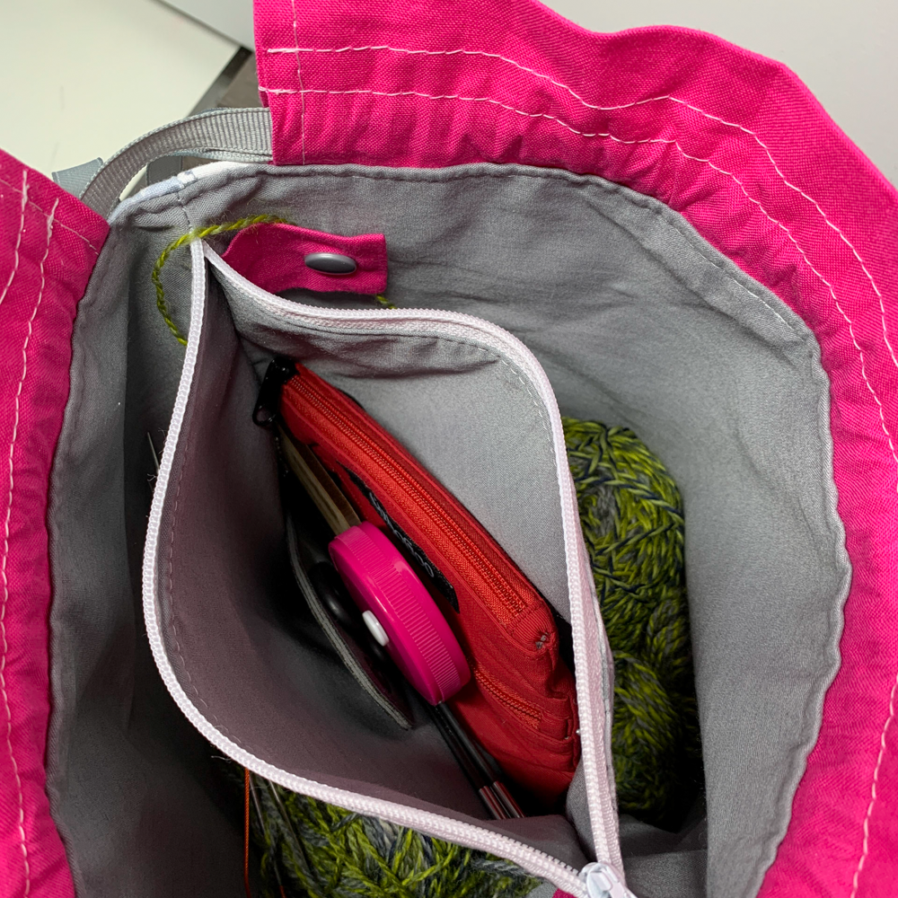 This is the perfect project bag for knitting socks, mittens, hats or other smaller projects, especially if you are doing colour work.